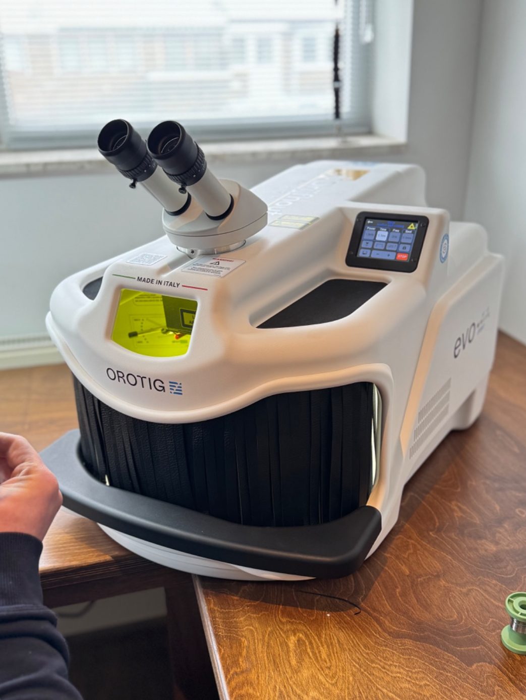 Met laserwelden wordt er metaal, goud of platina op de kast of band gelast, om deuken en diepe krassen of grote beschadigingen op te vullen. Na het polijsten van deze gelaste kast of band ziet deze er weer fabrieksnieuw uit, zonder te zien dat er is gelast. ideaal voor totale restauraties.
