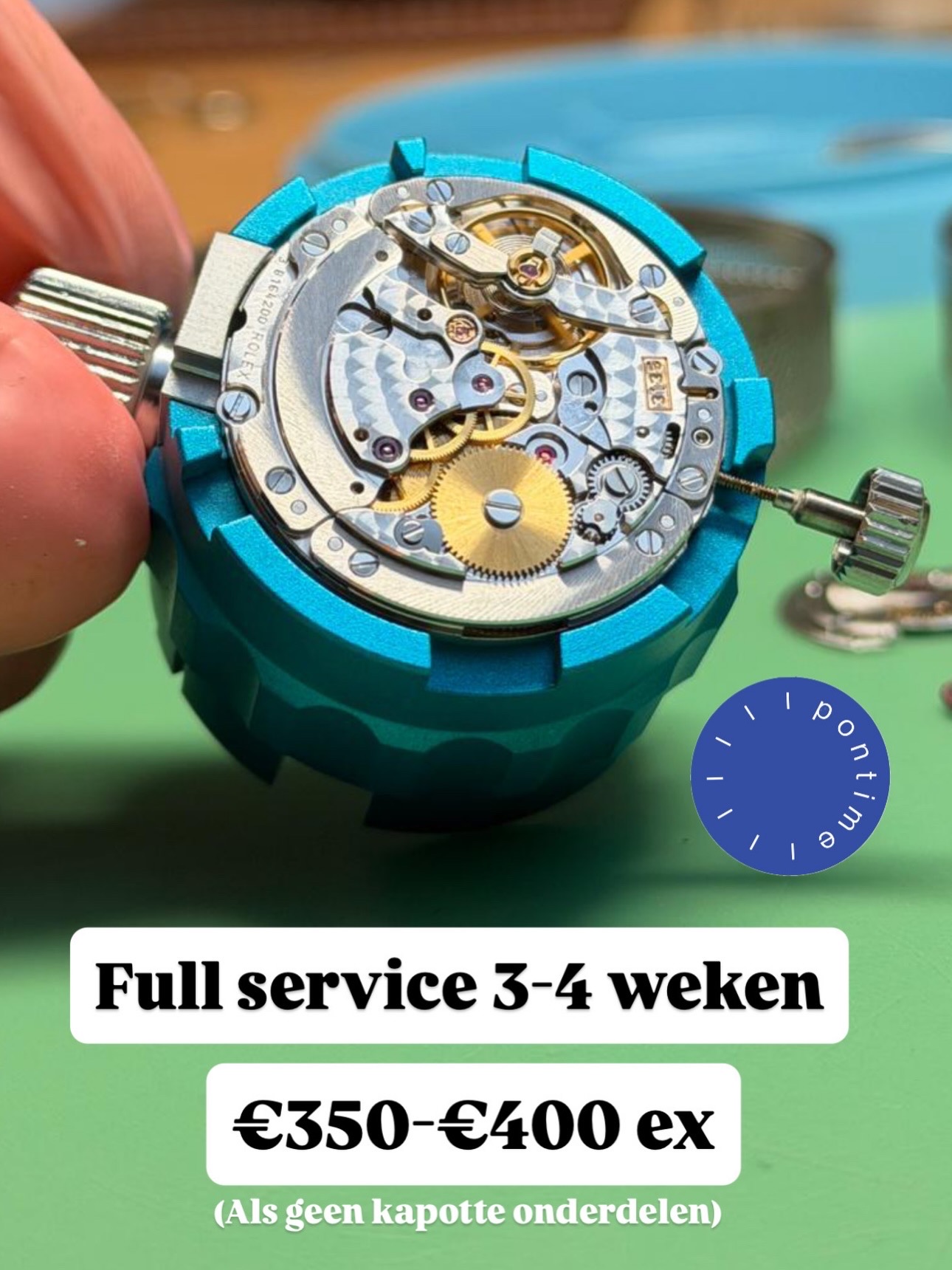Pontime is een nieuw horloge atelier in het midden van het land (Naarden/Bussum, in Gooise Meren). Met drie vakbekwame horlogemakers die samen een berg aan ervaring hebben staan we klaar om jou te helpen met je horloge issues - en vragen. Tommy heeft 5 jaar bij Breitling gewerkt en heeft daar vooral gepolijst, Floris heeft een unieke combinatie van commercie en vakmanschap, mede opgedaan bij Christiaan van der Klaauw en Richard is de Rolex expert die alle certificaten heeft gehaald en die alles weet van en over (vintage) Rolex. Met deze talenten, gecombineerd met de nieuwste en beste apparatuur, kunnen we jouw horloge(s) perfect onderhouden of repareren, polijsten en lapideren (als nodig) of zelfs restaureren met laserwelding. Zowel particulieren als handelaren zijn welkom. Wij maken van elke frikandel weer een sate-kroket!